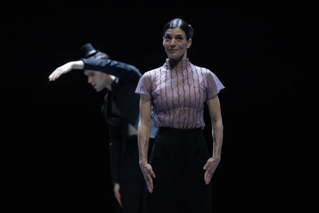 Das expressionistische Bewegungsmaterial trägt unverkennbar Goeckes Handschrift: ein nervöser, hochkonzentrierter Stil, geprägt von rasenden Oberkörperbewegungen, flatternden Armen, zuckenden Impulsen und abrupten Richtungswechseln. Klassische Tanzformen sind noch erkennbar, erscheinen jedoch gebrochen, verzerrt und in einen Zustand permanenter innerer Unruhe versetzt. Der Tanz arbeitet dabei konsequent kontrapunktisch gegen Tschaikowskys zuweilen schwelgende Musik – besonders eindrucksvoll im berühmten Schneeflockenwalzer, der hier nicht verzaubert, sondern irritiert.