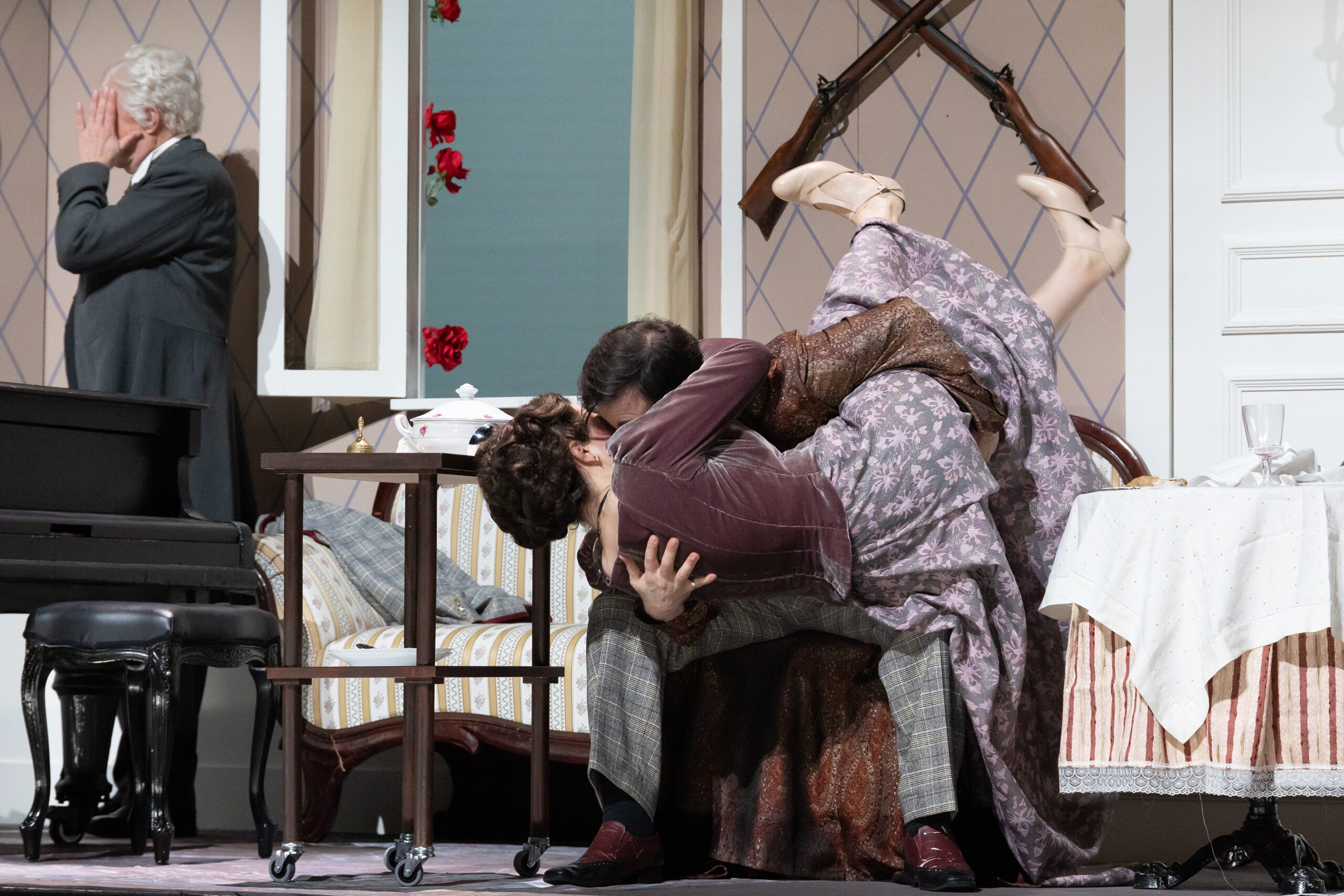 Philipp Werner als Dr. Blind gerät mit den weniger subtilen Mitteln dieser Inszenierung in Berührung: gefülltes Nachtgeschirr wird herumgereicht, Herrschaften werden auf dem stillen Örtchen überrascht. Dagegen ist nichts einzuwenden. Hier scheint das Wiener Volkstheater auf, aus dem sich die Librettisten Karl Haffner und Richard Genée reichlich bedienten. Weigands „Theater pur“ verachtet die Klamotte nicht, sondern beherrscht sie handwerklich souverän.