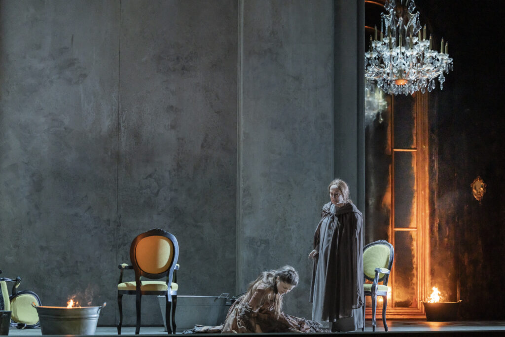 Die wandlungsfähige Mezzosopranistin Evelyn Herlitzius, die auch in der Zürcher Erstaufführung dieser Regie mitwirkte, gestaltet den Todeskampf als erschütternde Einheit aus körperlicher Zerrüttung und seelischem Aufruhr. Ihre Stimme, scharf fordernd, aggressiv und im nächsten Moment weich zurückgenommen, spannt ein vibrierendes Spektrum von Angst, Zorn, Trotz und Erschöpfung, bis hin zur Regression ins Kindliche.