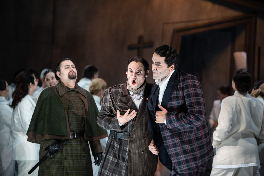Alexandro Lárraga Schleske zeichnete den Bruder Enrico als zugleich brutale wie bemitleidenswerte Figur – mit mächtigem, markantem Bariton.