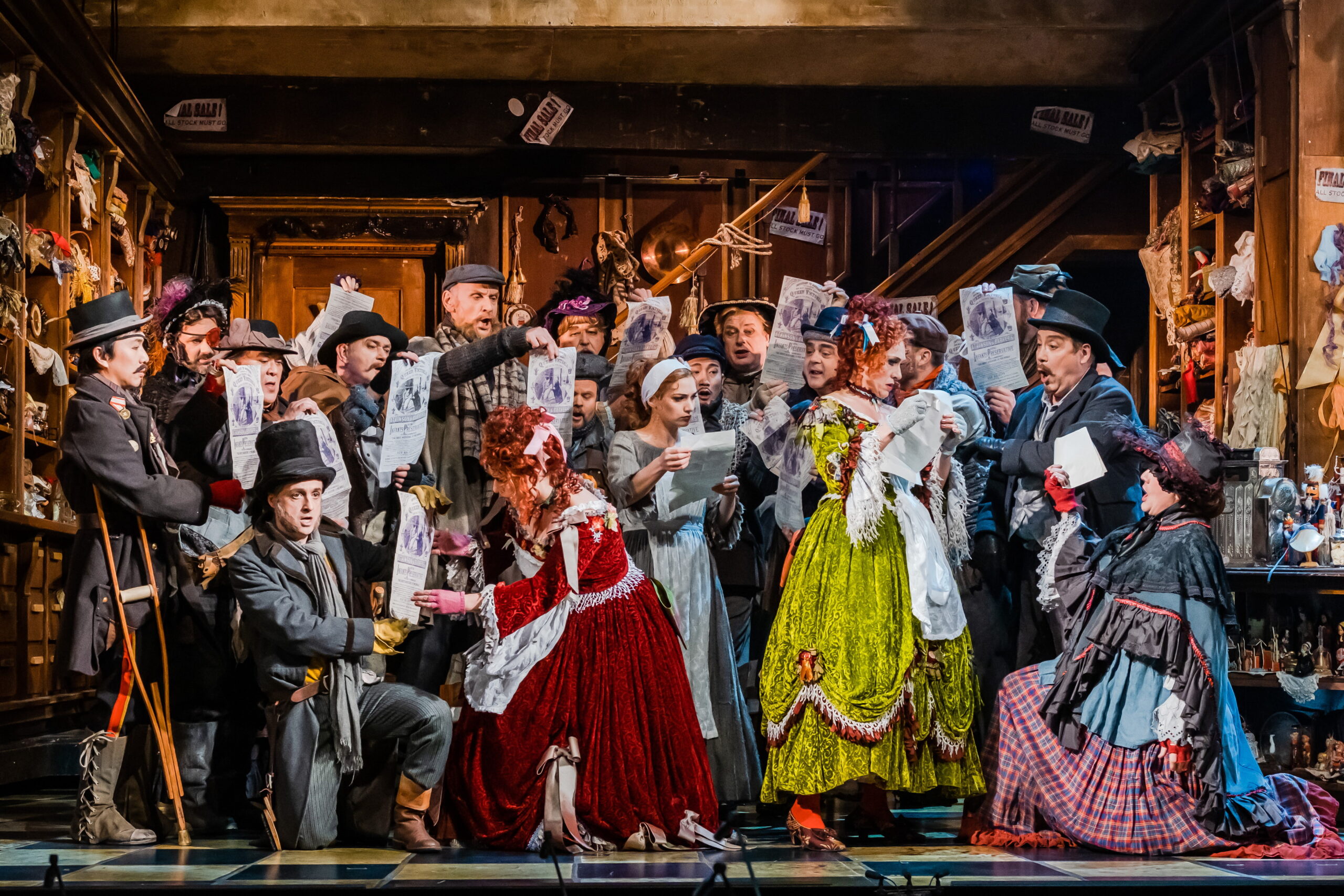 Detailverliebte Gestaltung Dieses Milieu zauberte Dan Potra. Der international tätige Designer ist dem Haus am Augustusplatz lange verbunden („Carmen“ 2018, „Don Pasquale“ 2014). Er legt Wert auf Details und hat sich damit ins Gedächtnis eingeschrieben. In „La Cenerentola“ setzt Potra wie auch in den beiden anderen Inszenierungen genial die Vorstellungen von Lindy Hume um. Die australische Opernregisseurin erfreut sich nach eigenen Bekundungen an den Royals aus dem Mutterland des Commonwealth. Mit Fähnchen und Transparenten frischt sie lächelnd ihre und unsere Erinnerungen an das viktorianische Zeitalter auf.