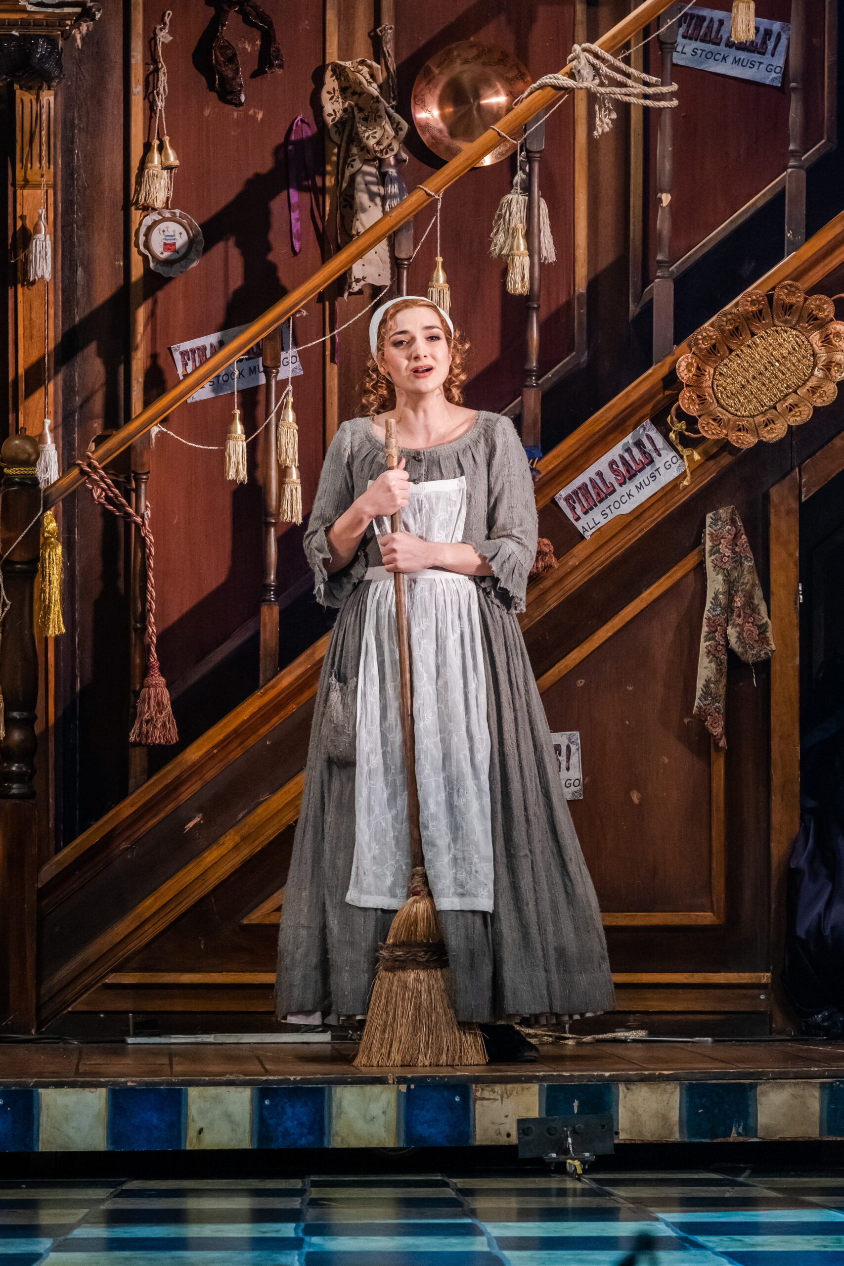 Leipzig gibt sich niedlich 2016 inszenierte in Leipzig ein Team mit guten Argumenten im dramaturgischen Gepäck das Märchen vom Aschenputtel geradezu märchenhaft schön. Im ersten Akt, vom Libretto vorgegeben als „Saal des Barons Magnifico“ und in Dresden eine Großküche, wird ein Puppenstuben-Kaufmannsladen aufgebaut. Alles darin ist herzallerliebst plüschig und niedlich eingerichtet. Die holen Schwestern spielen mit sich selbst. Der stolze, aber überforderte Papa sitzt in der Stube überm Laden und blickt selbstgefällig auf seine Töchter. In dem aufs Hübsche fixierten Umfeld ist selbst das Elend der zu einem Dasein als Magd verdammten Stieftochter Angelina nicht wirklich elend.