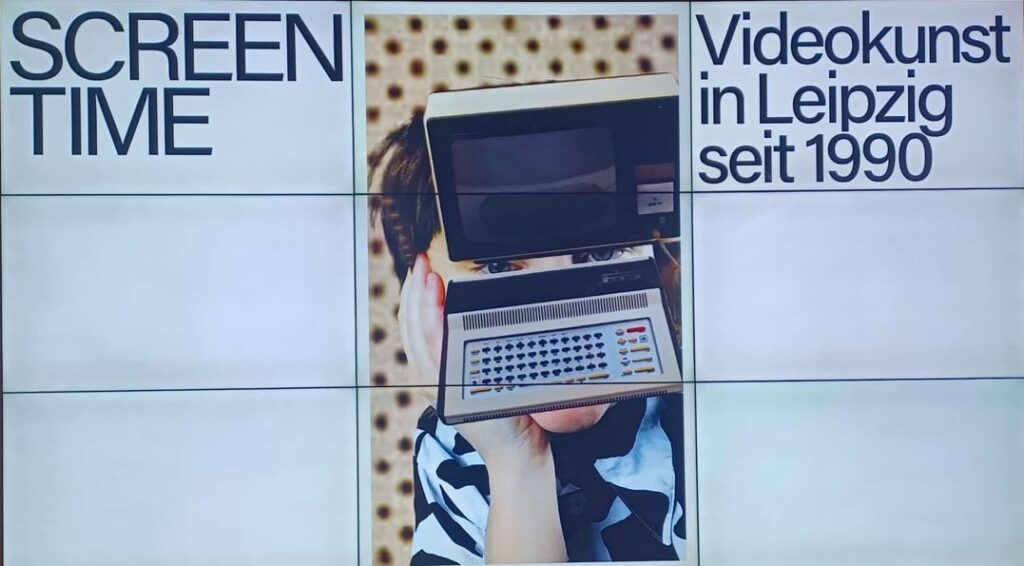 Bis zum 31. August 2025 zeigt das MdbK Leipzig auf seiner großen Sonderausstellungsfläche im Untergeschoss unter dem Titel „Screen Time“ Videokunst aus oder mit thematischem Bezug zu Leipzig, die nach 1990 entstanden ist. Die knifflig zu nennende Auswahl aus einem vorhanden sehr breiten Bestand ist auch eine Verneigung vor der Arbeit der Leipziger HGB und ihrem Studiengang Medienkunst.