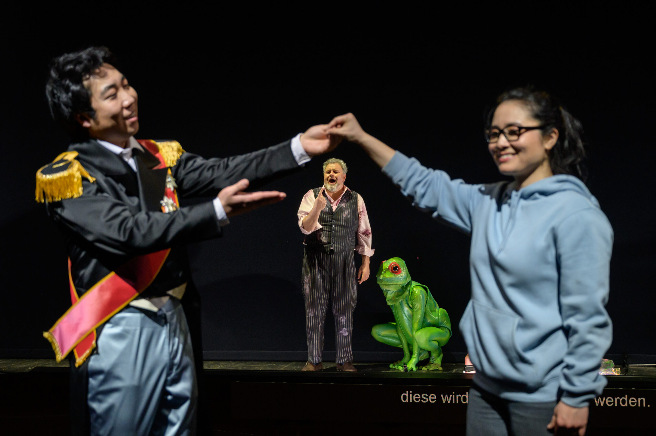 Taejun Sun (Don Ramiro, Prinz von Salerno, Philipp Meierhöfer (Alidoro, Philosoph und Erzieher Don Ramiros), Jonathan Michie / Ilya Silchuk (Dandini), Uwe Schenker-Primus (Don Magnifico), Marlene Gaßner (Tisbe), Ylva Sofia Stenberg (Clorinde), Sayaka Shigeshima (Angelina), Opernchor des DNT, Staatskapelle Weimar